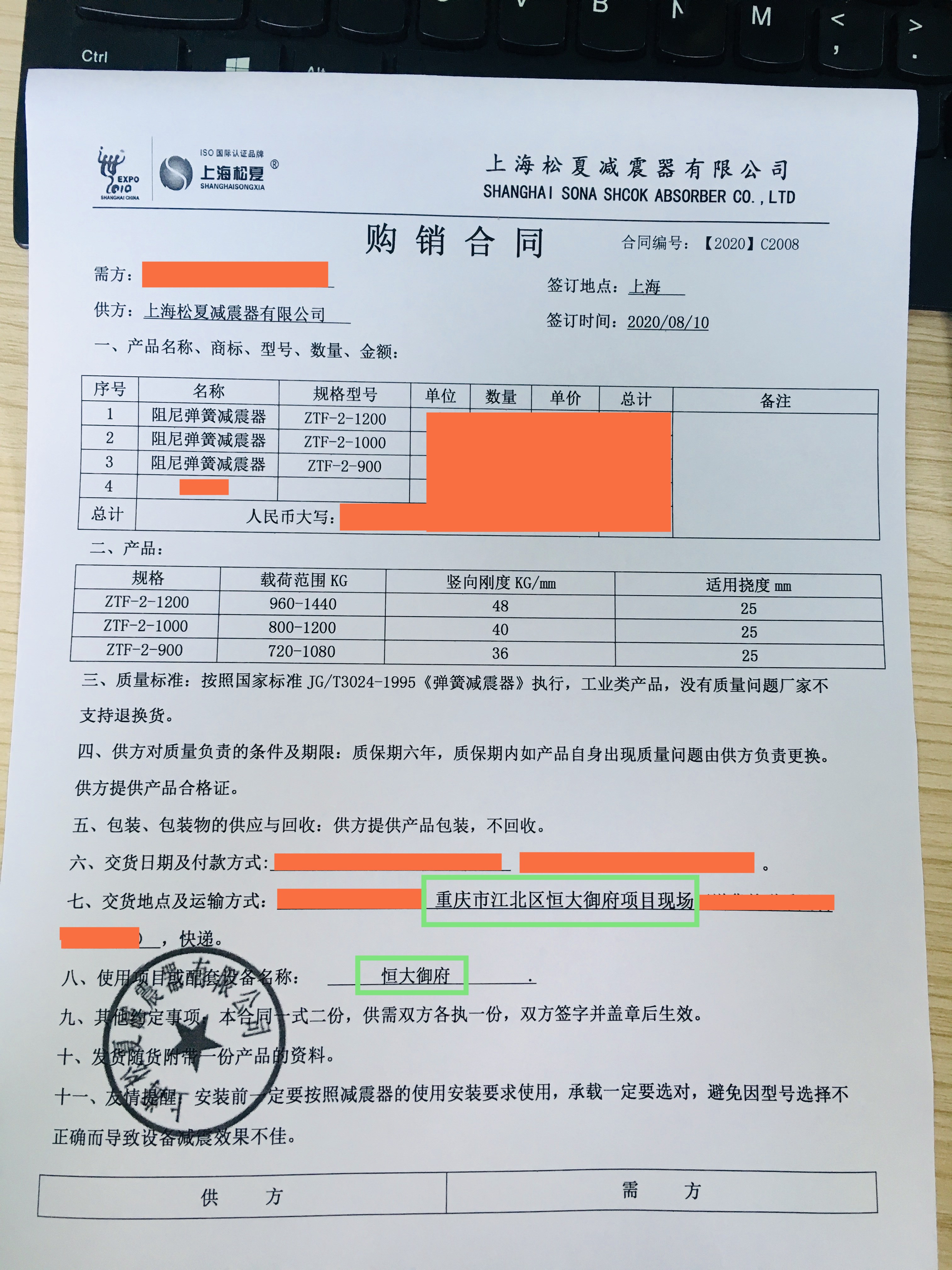 【恒大御府配套】上海松夏阻尼彈簧減震器
